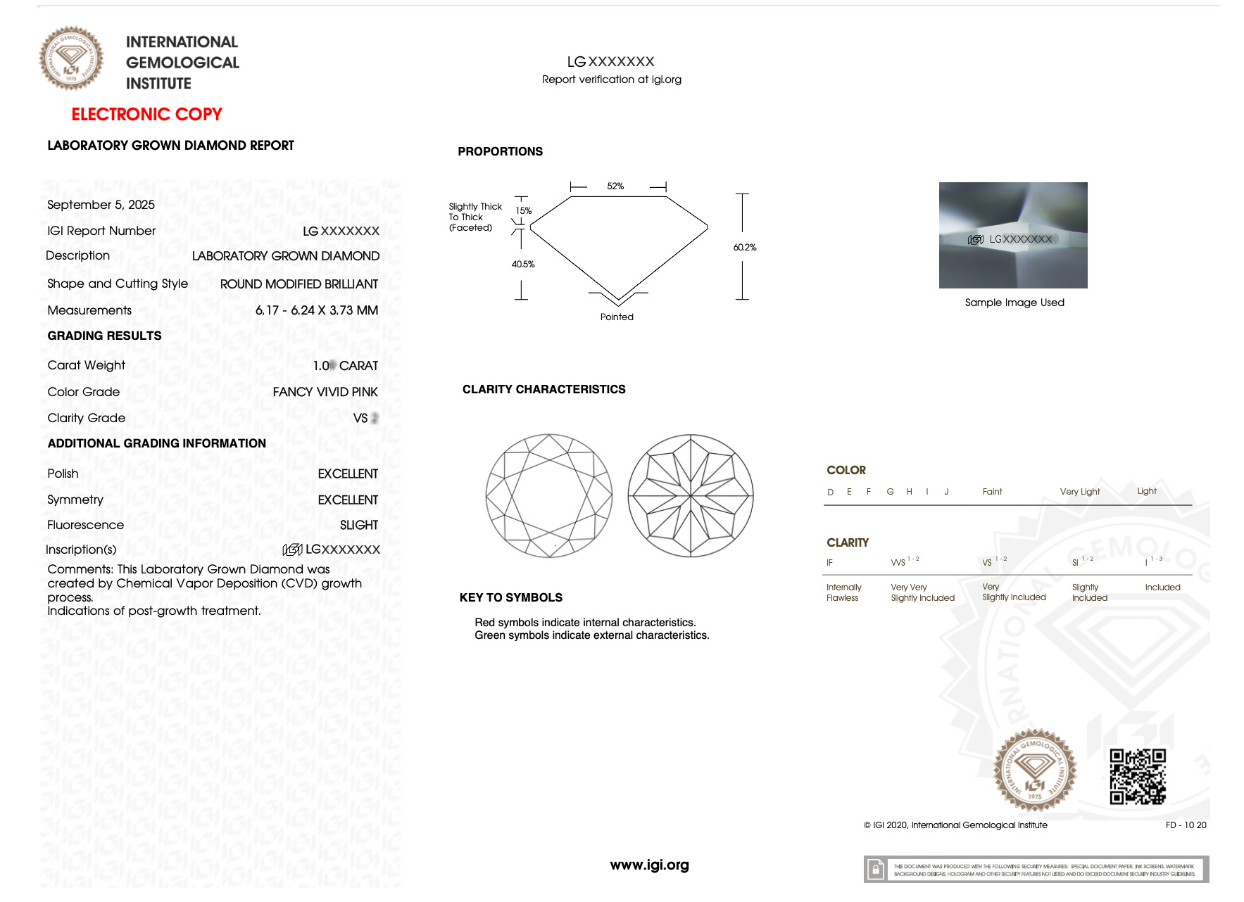 實驗室粉紅彩鑽圓形裸石1克拉