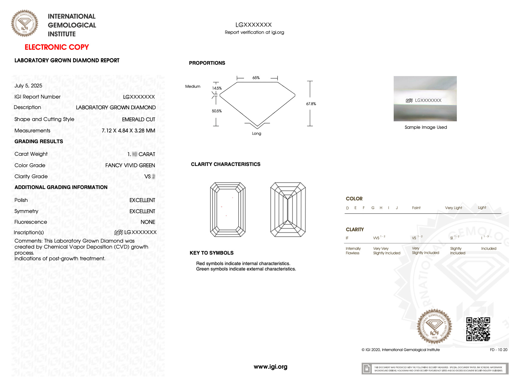 實驗室綠彩鑽祖母綠形裸石1克拉