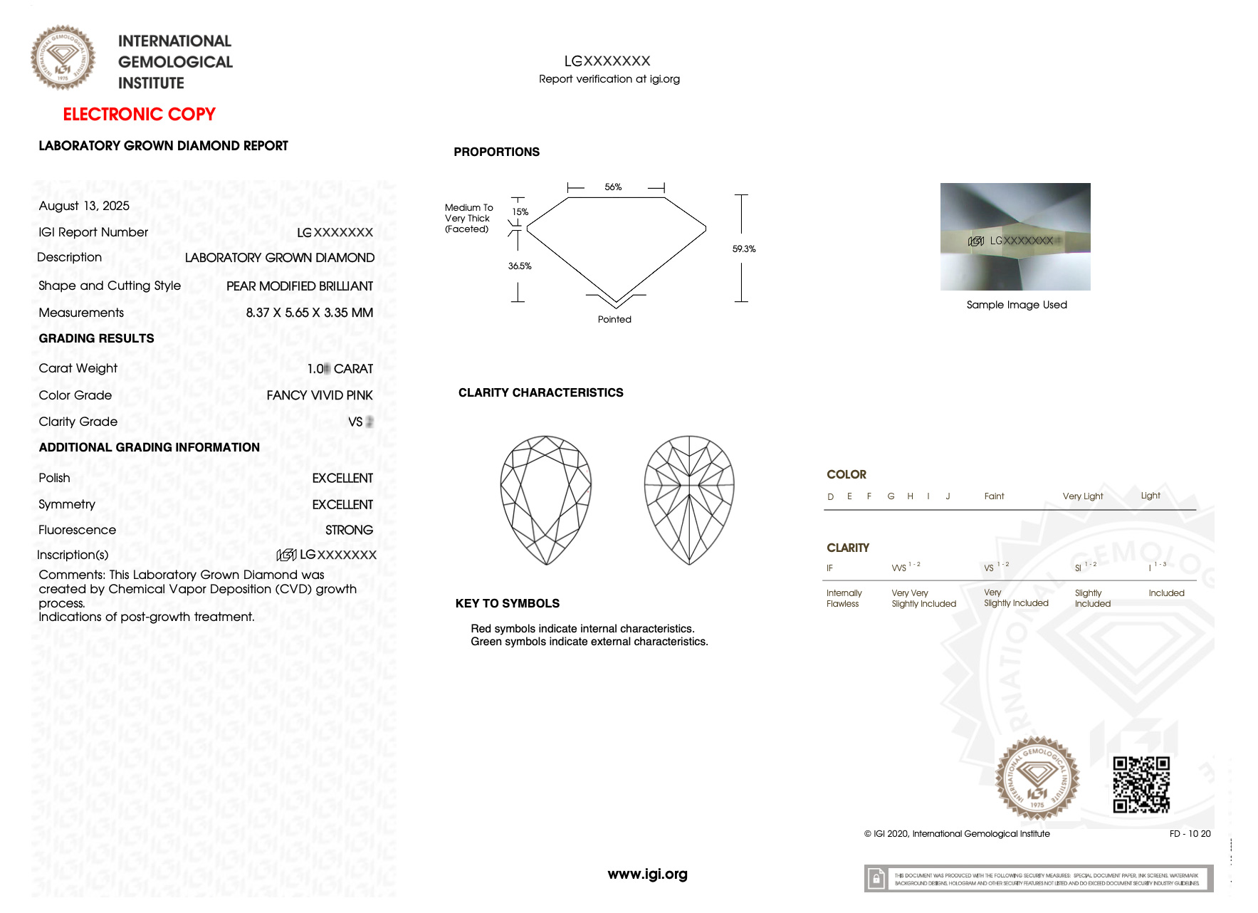 實驗室粉紅彩鑽水滴形裸石1克拉