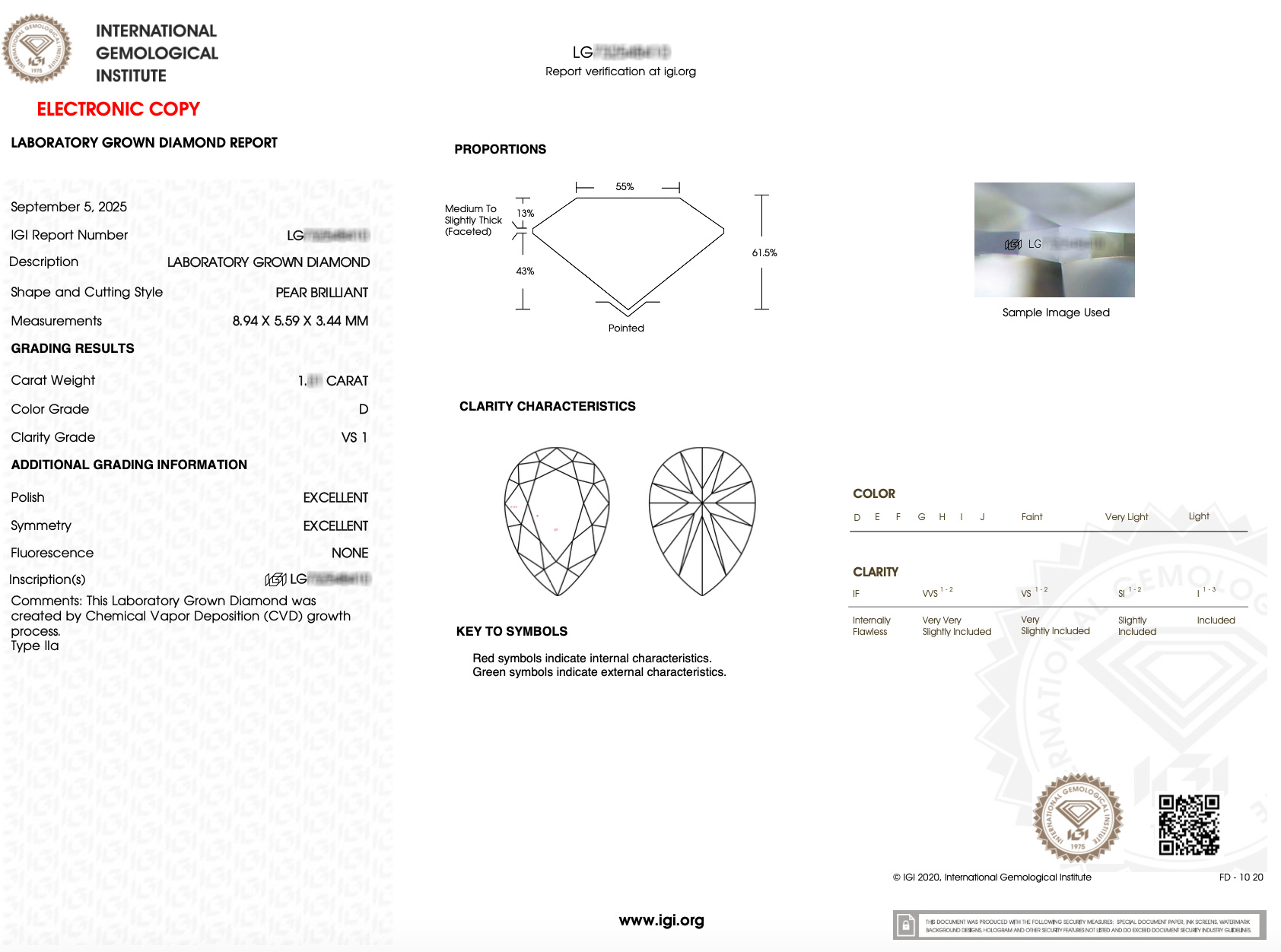 實驗室鑽石水滴形lGl.1克拉D.vs1